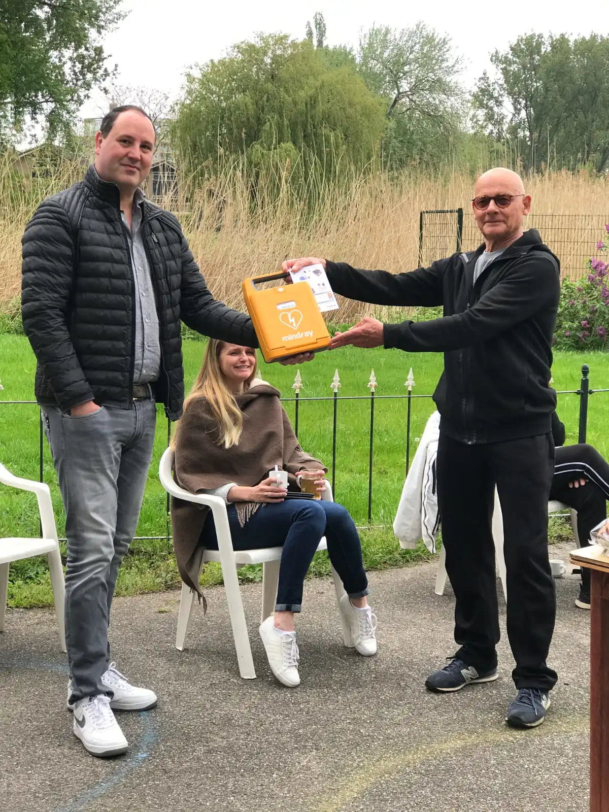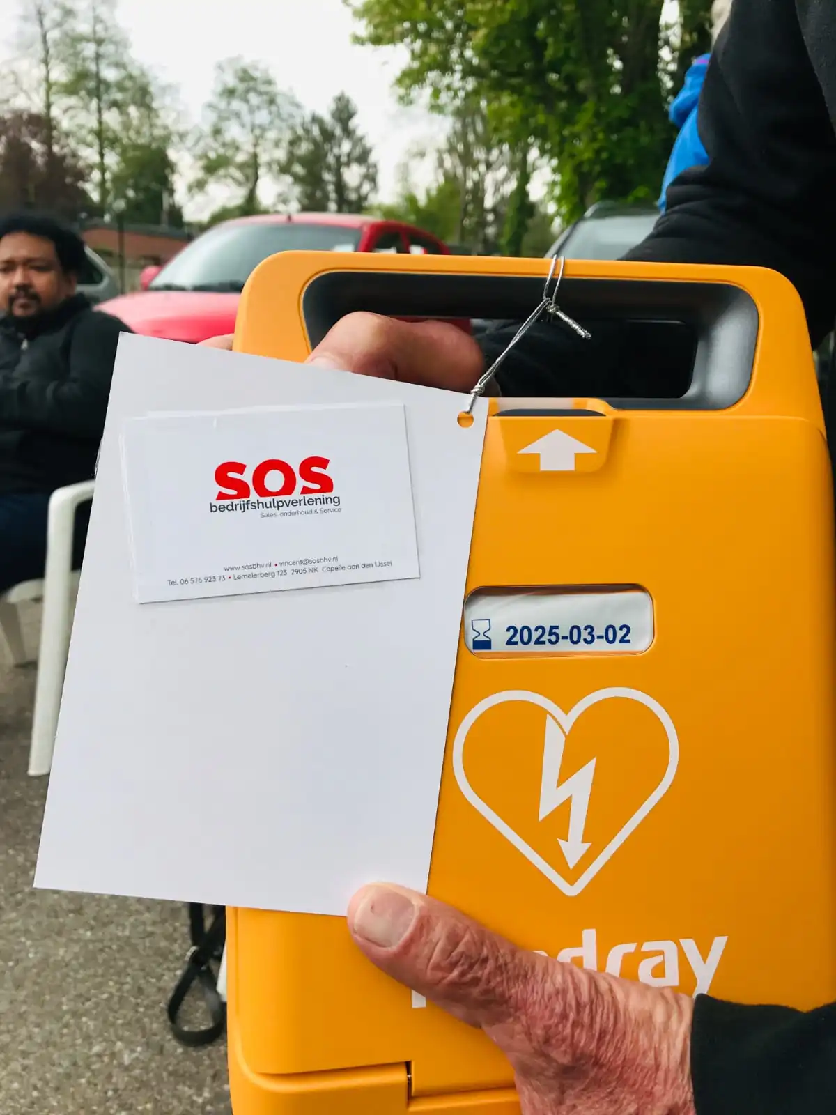 SOS bedrijfshulpverlening heeft onze vereniging gesponsord met een gloednieuw AED apparaat. Vincent van Arkel was persoonlijk op de Beukhoeve aanwezig om het AED apparaat te overhandigen aan Dick de Vries (lid van het bestuur).